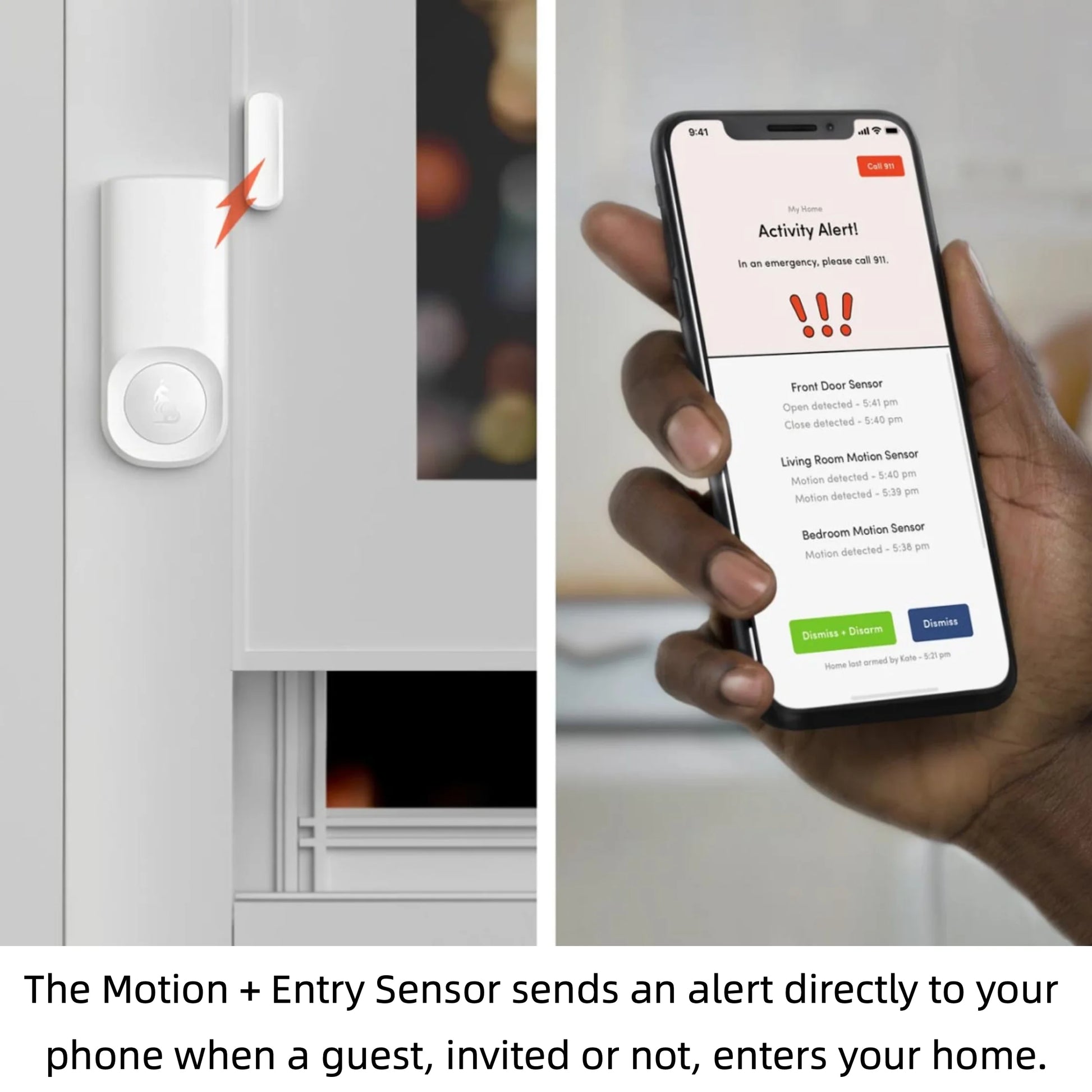 - Motion + Entry Sensors guard doors and windows, sending an alert the moment an entry point is opened, so you can act before a break‑in.