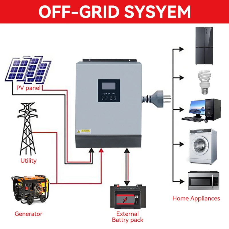 Power your home with seamless backup and flexible energy flow using the ECGSOLAX 2400W Hybrid Solar Inverter.