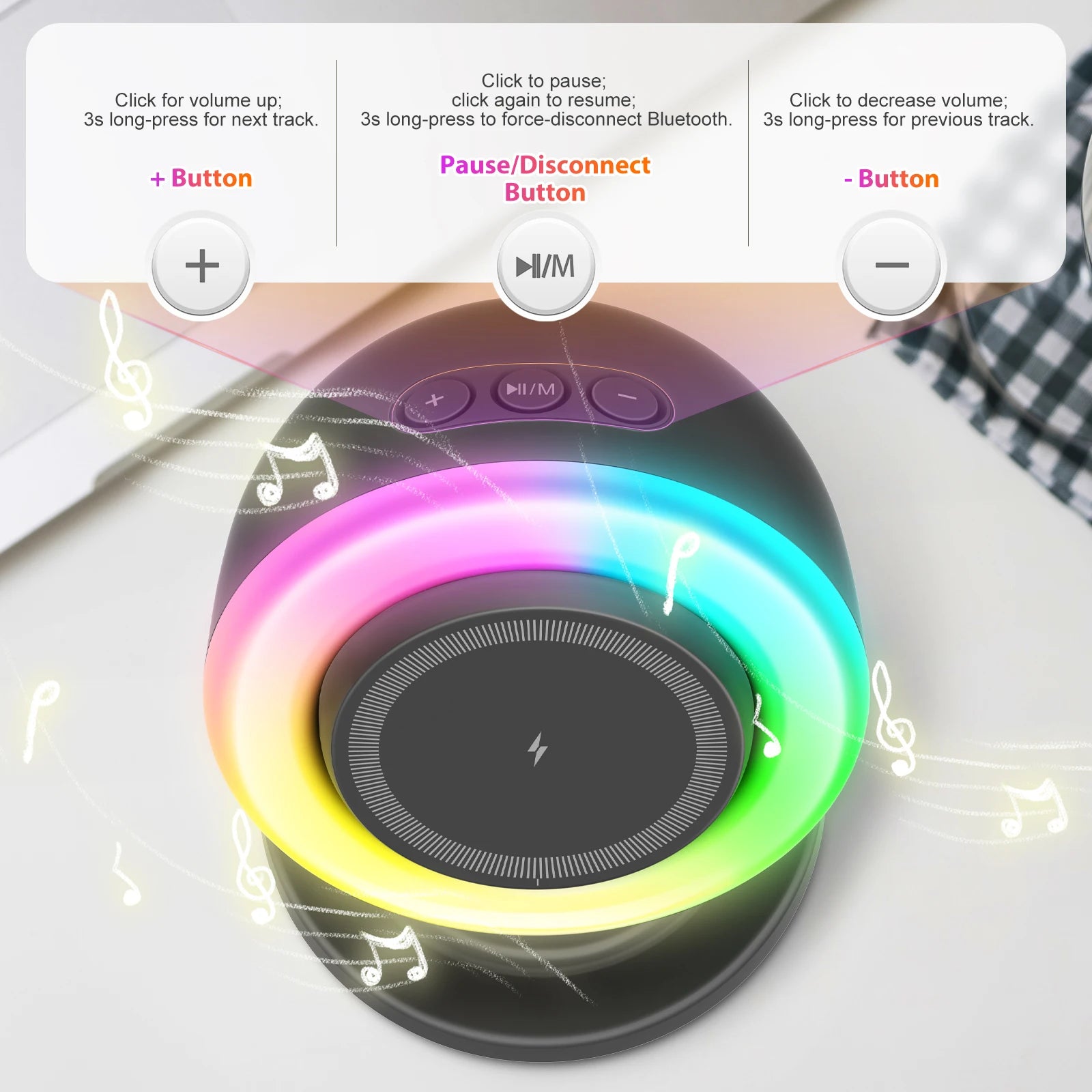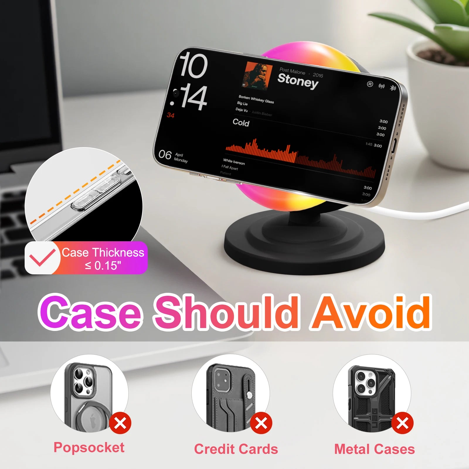 - 4‑in‑1 versatility: wireless charger up to 15W, a magnetic phone stand, a built‑in Bluetooth speaker, and an RGB night light that sets the mood.