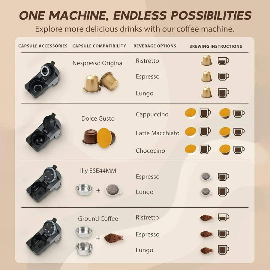 SHXI Multi Capsule Espresso 4 In 1 Coffee Maker Compact