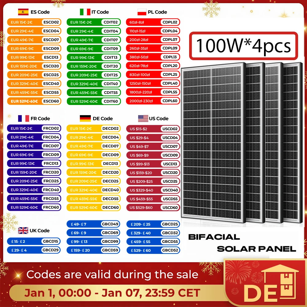 Rvpozwer 400W 12V Double Sided Monocrystalline Solar Panel