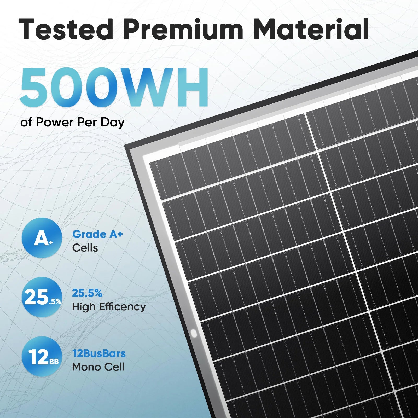- Double-sided design boosts energy capture by using reflected light, improving performance in low-sun conditions during dawn, dusk, or cloudy days.