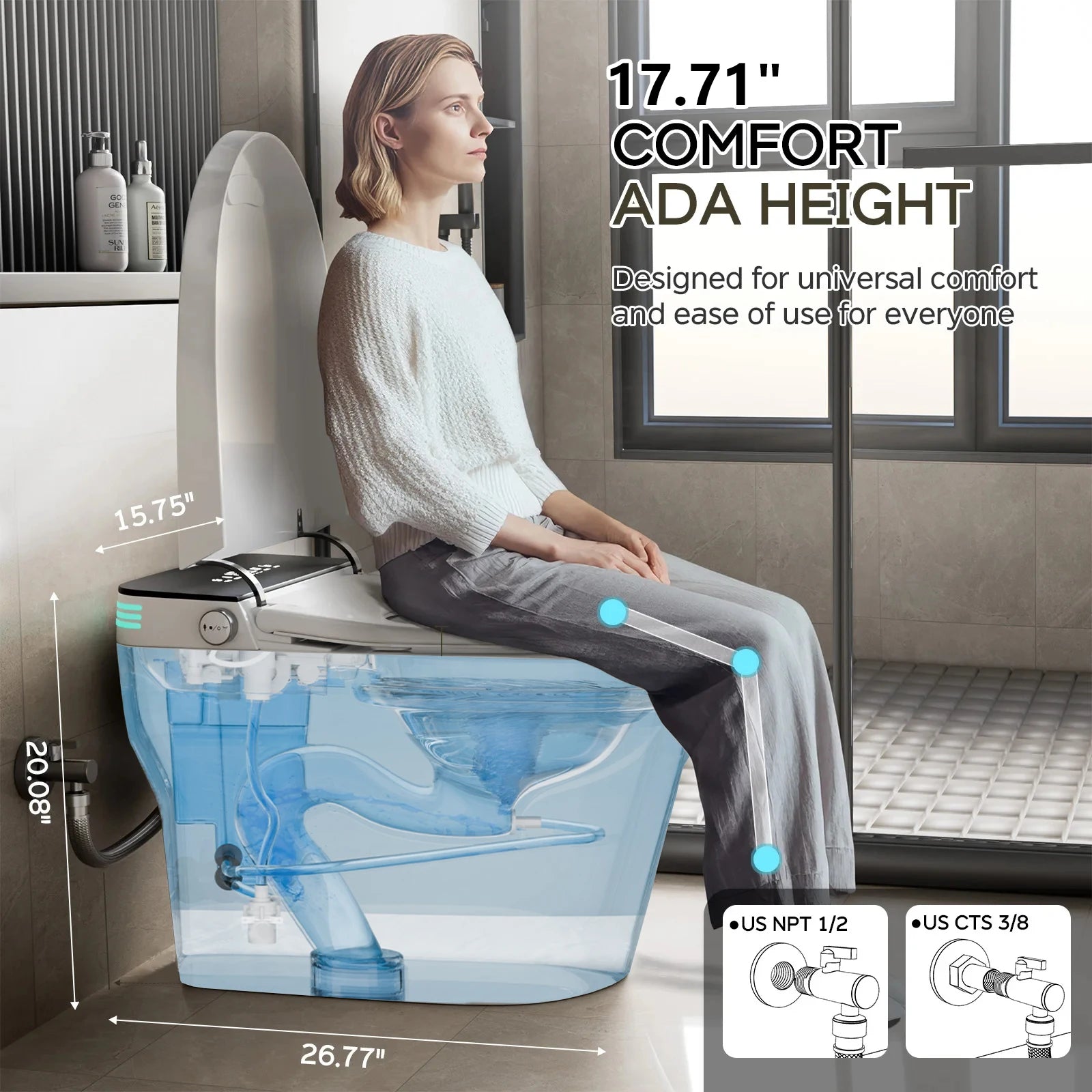 Upgrade your bathroom with a smart, ADA-approved elongated one-piece heated bidet toilet that delivers hands-free comfort and precise cleansing.