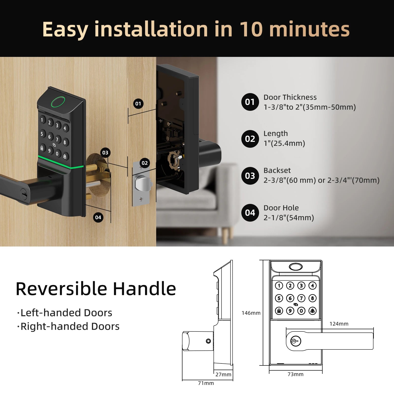 - Smart Tuya integration lets you monitor access, set time-limited codes, receive real-time alerts, and control from anywhere using the app.